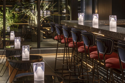 The Medusa collection features a handcrafted resin dome diffuser paired with a solid aluminium base. Resin is available in two translucent tones—amber and clear—each offering its own interplay of light and texture. The base is finished in satin black or bronze for a muted, architectural contrast. Medusa is designed to sit comfortably in intimate dining environments, refined lounges, or private residences where detail and warmth matter. Every diffuser is shaped and finished by hand, ensuring a level of individuality that sets it apart from mass-produced lighting.